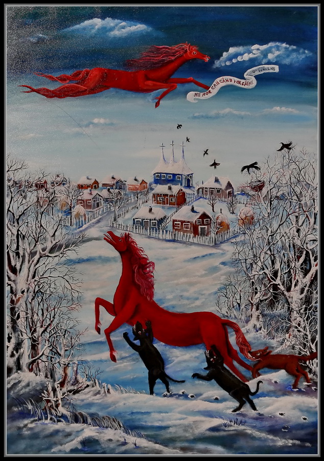 Chiar de la primul contact cu pictura sa, ce se vrea etichetată drept naivă, surprinde solicitarea funambulescului nu totdeauna necesar şi obsesia chagalliană de a popula cerul cu elemente de un fantastic deloc supranatural. După cum Marc Chagall îşi sprijină viziunile pe folclorul evreiesc din vechea Rusie, Calistrat Robu putea apela de pildă, pentru planul imaginar la literatura noastră populară. Fiind însă un plăcut narator, aplecat chiar spre ironia şugubeaţă a ţăranului hâtru, el se sprijină pe imagini care recurg la materialitate tocmai spre a da mai multă credibilitate „vizionarismului”, aşa cum procedează băsmuitorii când se jură pe ochii lor că tot ce-şi închipuie e adevărat.